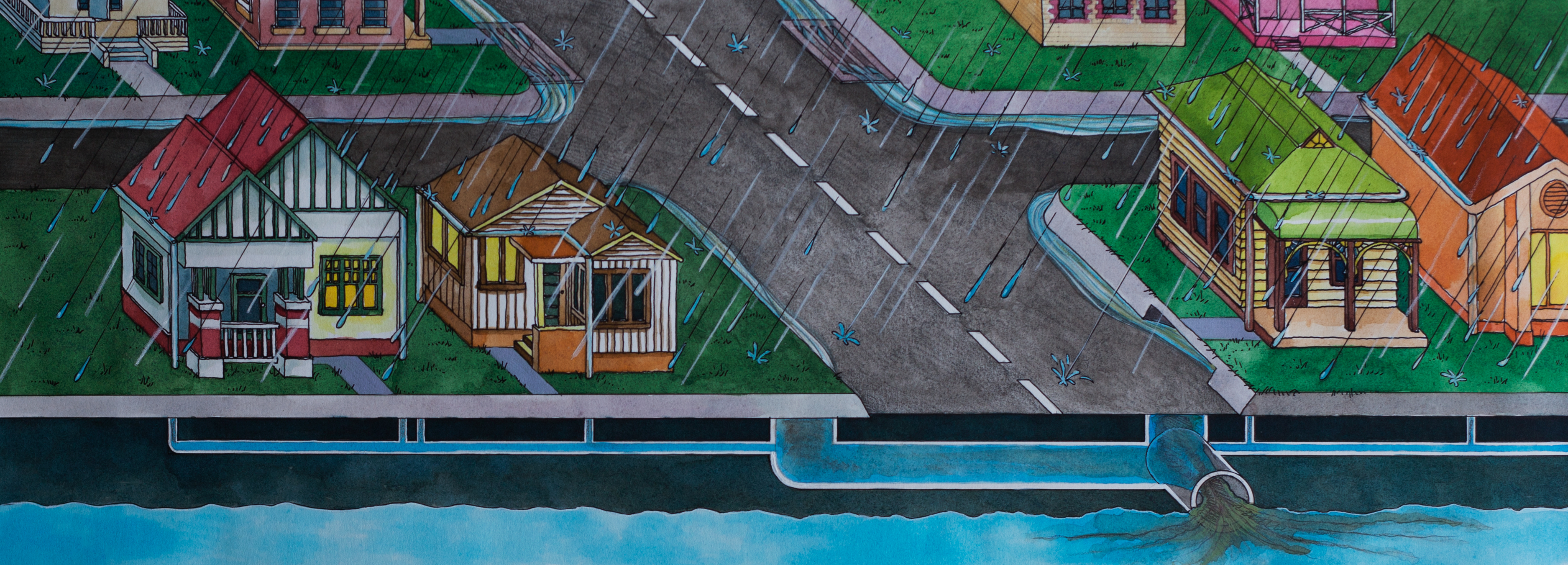Nature Matters (Environment level 2). C Jakab & D Keystone. Coloured ink on paper. 15 cm x 17 cm. 1995